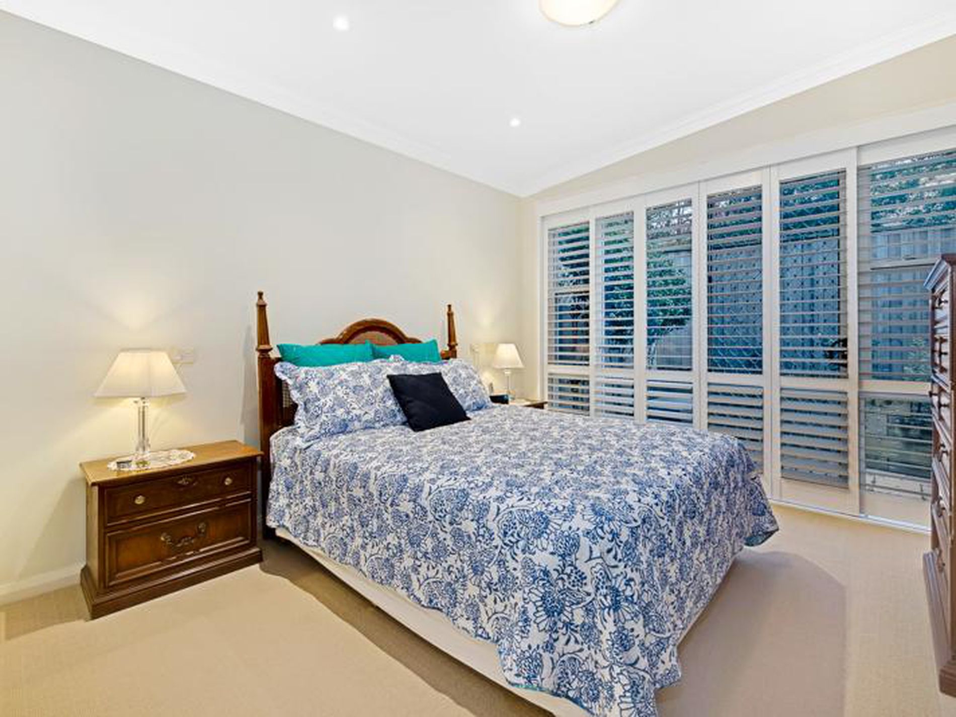 - Large formal lounge/dining room at front of home with plantation shutters.